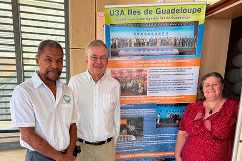 Por invitación del Presidente de la Universidad de la Tercera Edad de las Islas de Guadalupe, Henri Marie, y de la Vicepresidenta Véronique Hardel, el profesor François Vellas, Presidente de AIUTA, intervino ante los estudiantes senior de Guadalupe en el anfiteatro del campus de la Universidad de las Antillas en Saint Claude, Guadalupe, el viernes 13 de febrero de 2026. Durante su intervención, el profesor François Vellas recordó el desarrollo mundial de las Universidades de la Tercera Edad y las acciones realizadas en el ámbito del turismo senior en cooperación con las universidades. La Universidad de la Tercera Edad de Guadalupe participará en el viaje de estudios para seniors que se organizará en China en octubre de 2026. El presidente Henri Marie y Véronique Hardel han participado activamente en el programa de AIUTA, especialmente organizando excursiones para los estudiantes senior en el volcán La Soufrière en Guadalupe y participando en el Congreso Mundial de Turismo Senior organizado en China. Gracias a la acción de la Universidad de la Tercera Edad de las Islas de Guadalupe y en cooperación con UNITRA MADININA Martinique, AIUTA desarrollará nuevas acciones de cooperación internacional en todo el Caribe, particularmente a través del programa AIUTA INSULA, con los países anglófonos de Dominica, Antigua, Santa Lucía, San Vicente y Granada.