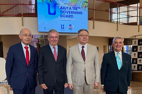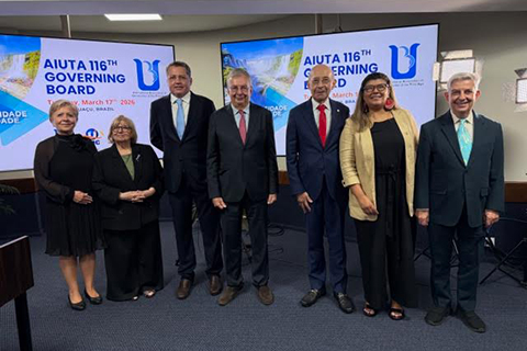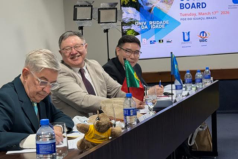 Le 116e Conseil d’Administration de l’AIUTA a été officiellement ouvert par le Pro-Recteur Fabio do Prado et par le Président de l’AIUTA, le Professeur François Vellas, à l’Université UDC de Foz do Iguaçu, Brésil, le mardi 17 mars 2026. Le Recteur Ferdinand Dano de l’Université d’Économie et de Business de Bratislava, Slovaquie, ainsi que le Recteur Marat Syrlabayev de l’Université Ualikhanov de Kokshetau, Kazakhstan, sont également intervenus lors de cette séance inaugurale en présence des représentants des universités du troisième âge de l’AIUTA. Cette cérémonie s’est conclue par des échanges de cadeaux entre les différentes délégations et par la présentation d’une vidéo sur les domaines d’enseignement et de recherche de l’Université UDC et des U3A au Brésil et au Paraguay.